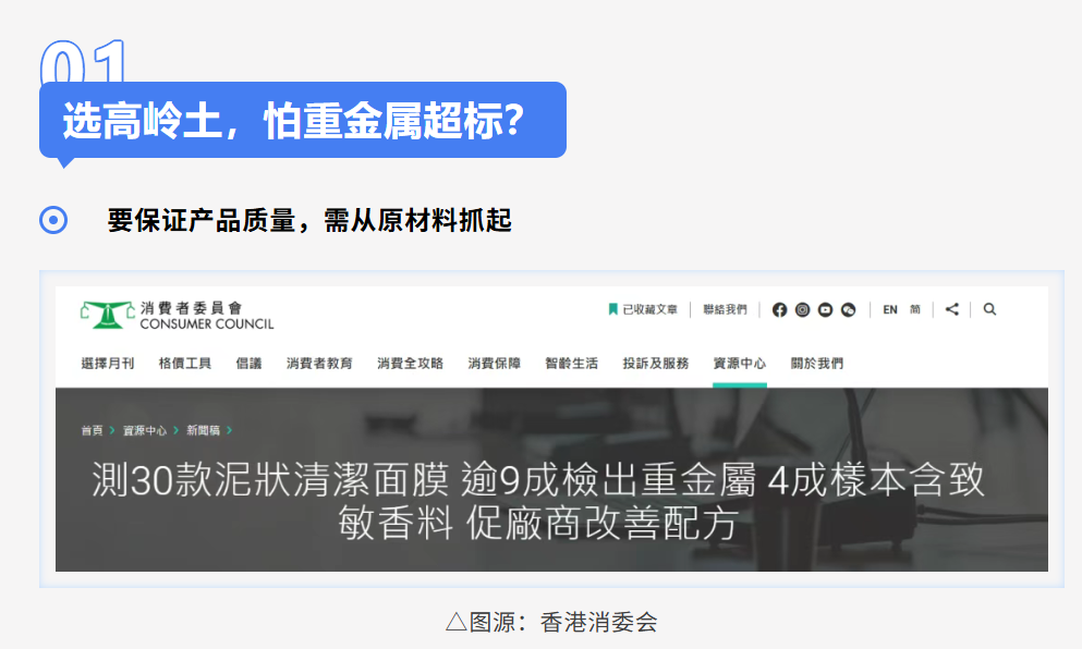 9月15日,香港消费者委员会(简称 “香港消委会”)公布 30 款泥状清洁面膜检测结果,数据令人忧心:28 款样本均被检出重金属,其中 2 款产品的砷、铅含量更是突破中、美双重标准上限,成为 “高危选项”,引发行业对泥膜原料安全的关注,骤然成了展会现场的热议焦点。